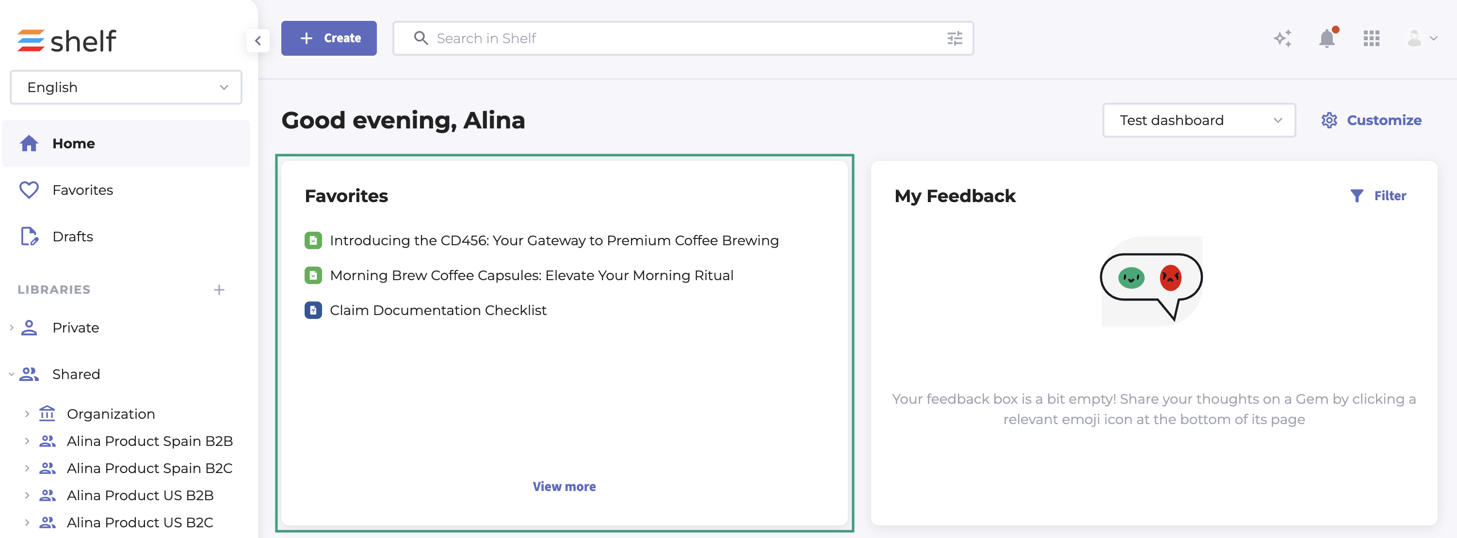 Favorites Widget on your Dashboard