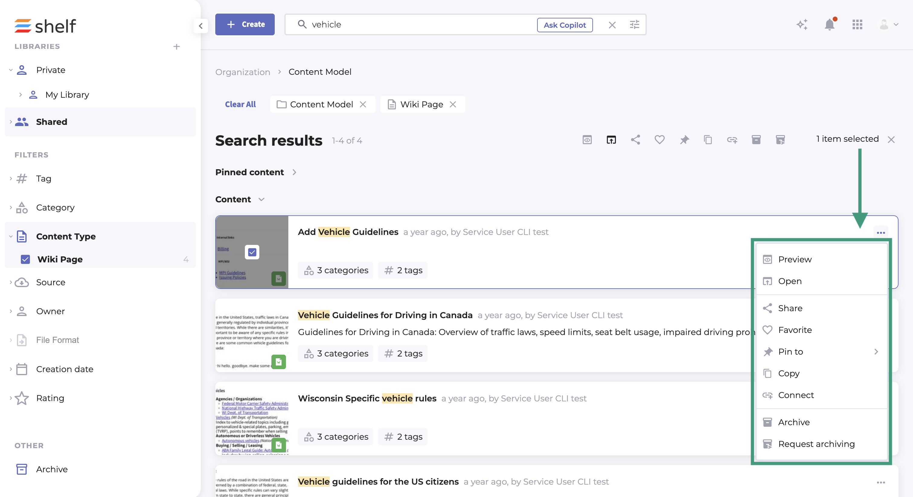 The context menu provides users with the ability to take action(s) on a Gem or collection of Gems.