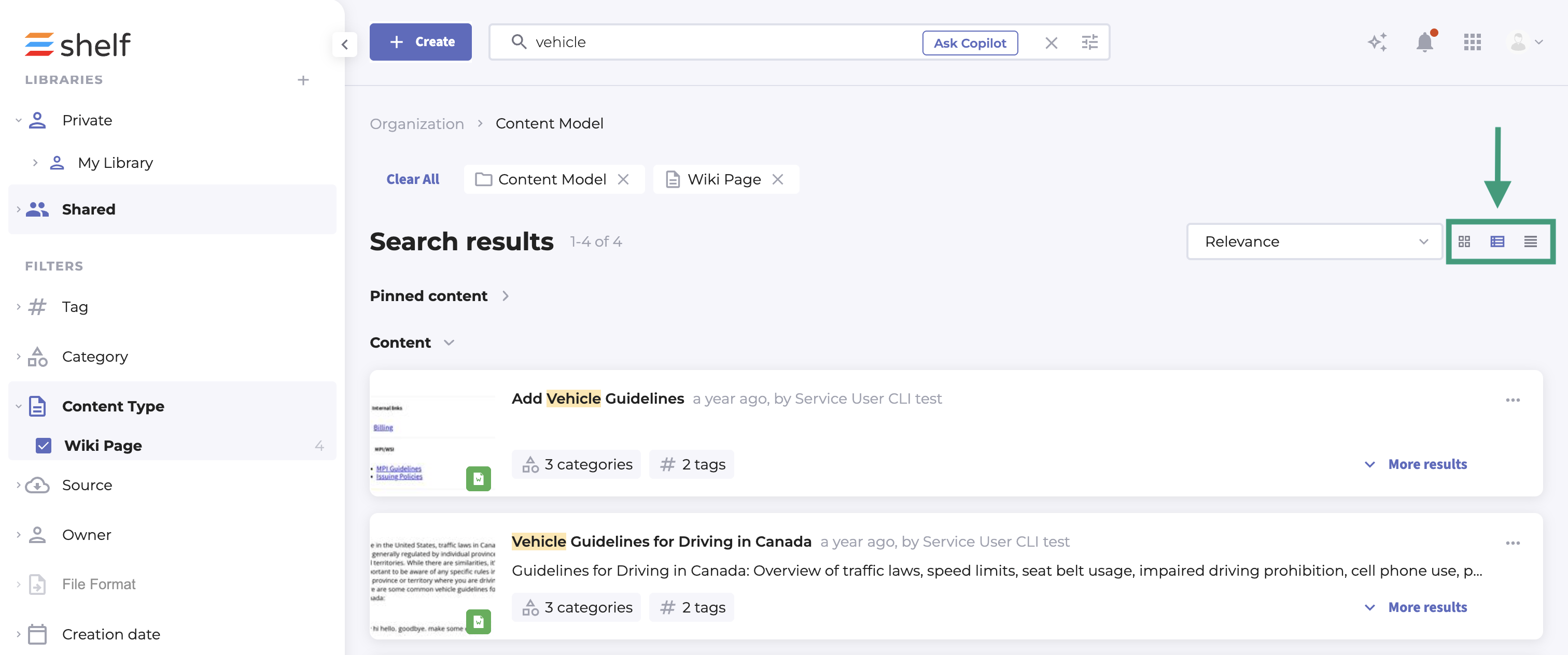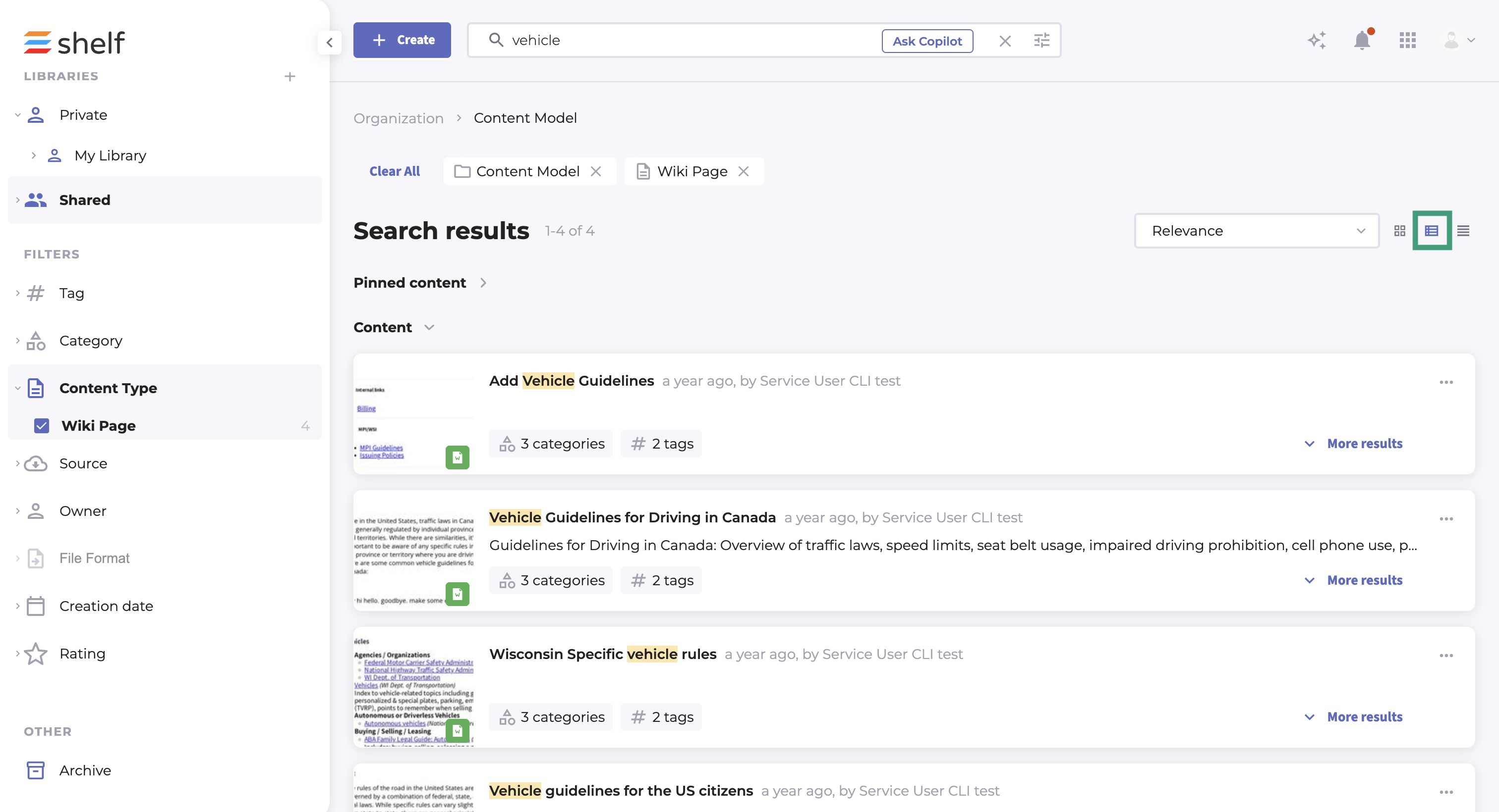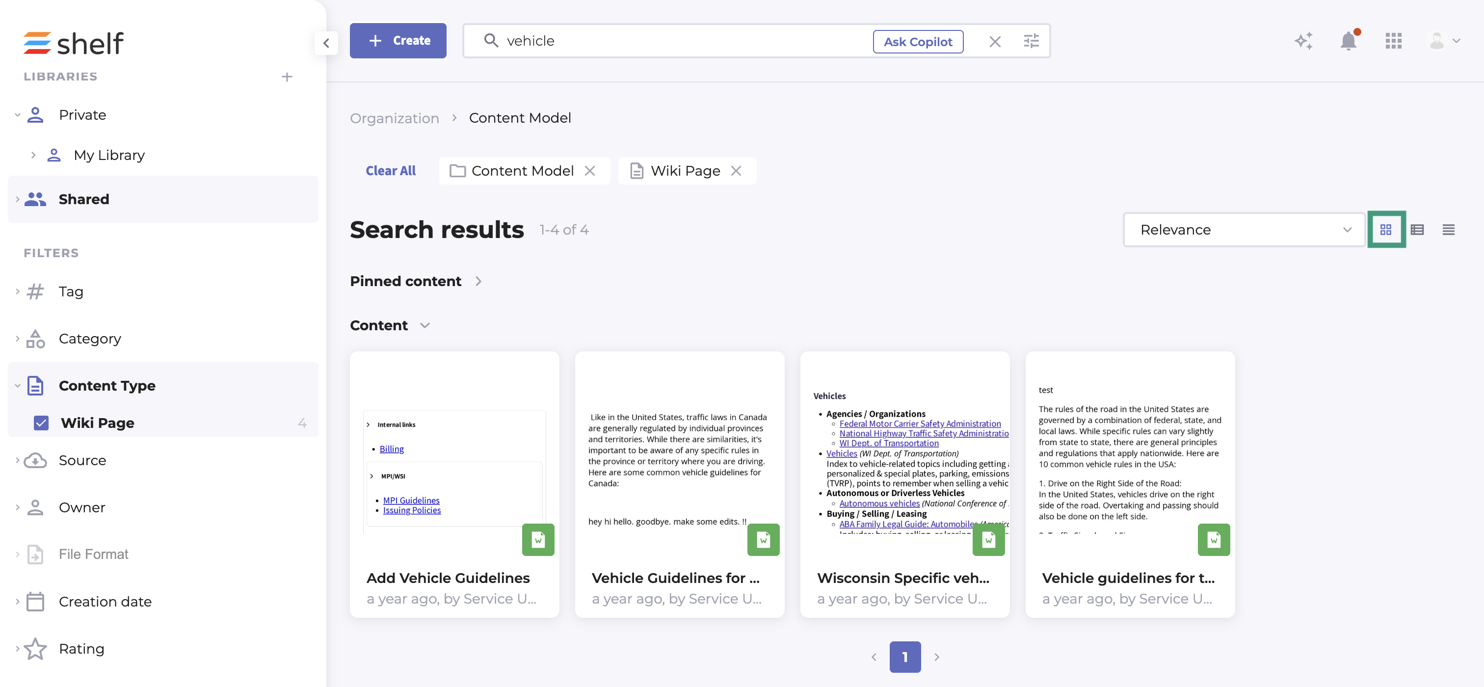 Shelf will sometime change the way Gems are presented on your Wall, based on the type of action you are performing. For example, users are presented with the Card view when they first login by default, but when they run a keyword search, the view will automatically update to the Snippet view.